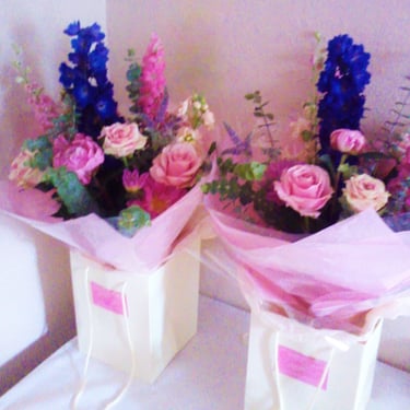 All Bouquets in water come in handtied Bags or Boxes as shown below